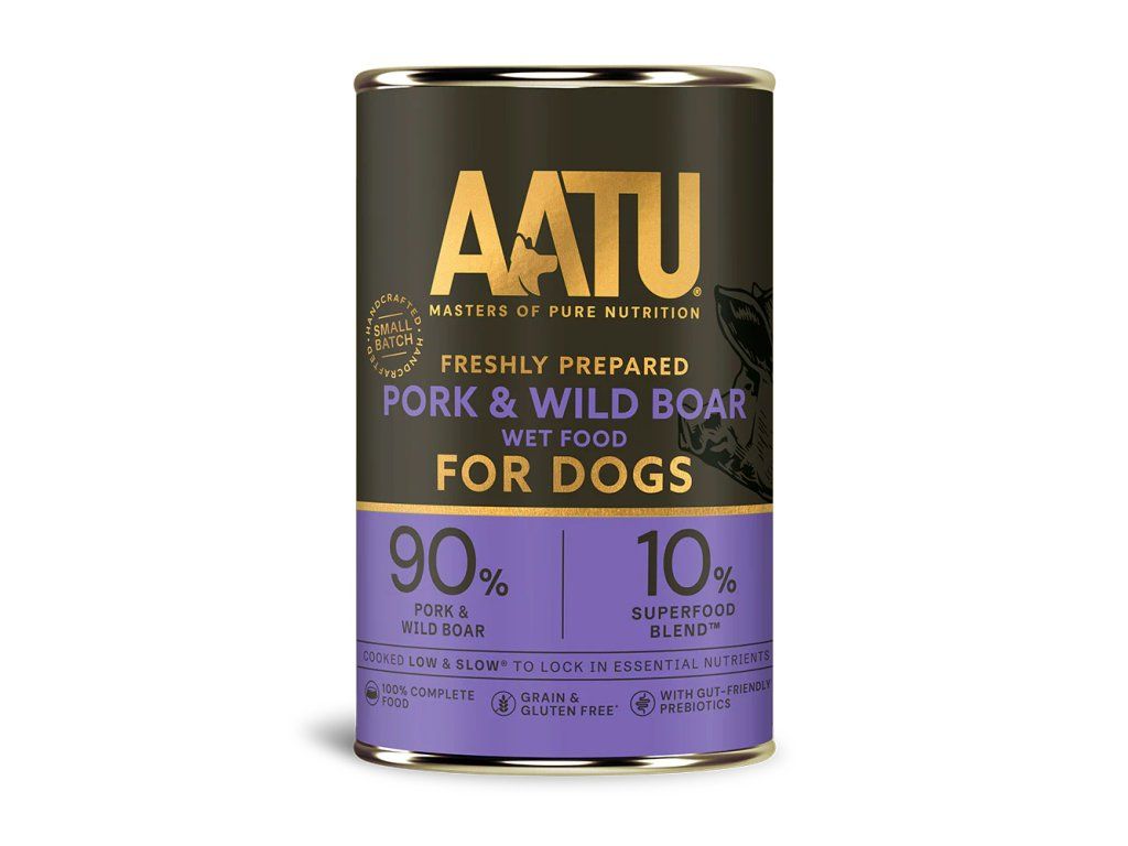 Kompletní superprémiové vlhké krmivo bez obilovin pro dospělé psy, obsahující 90 % kančího a vepřového masa.