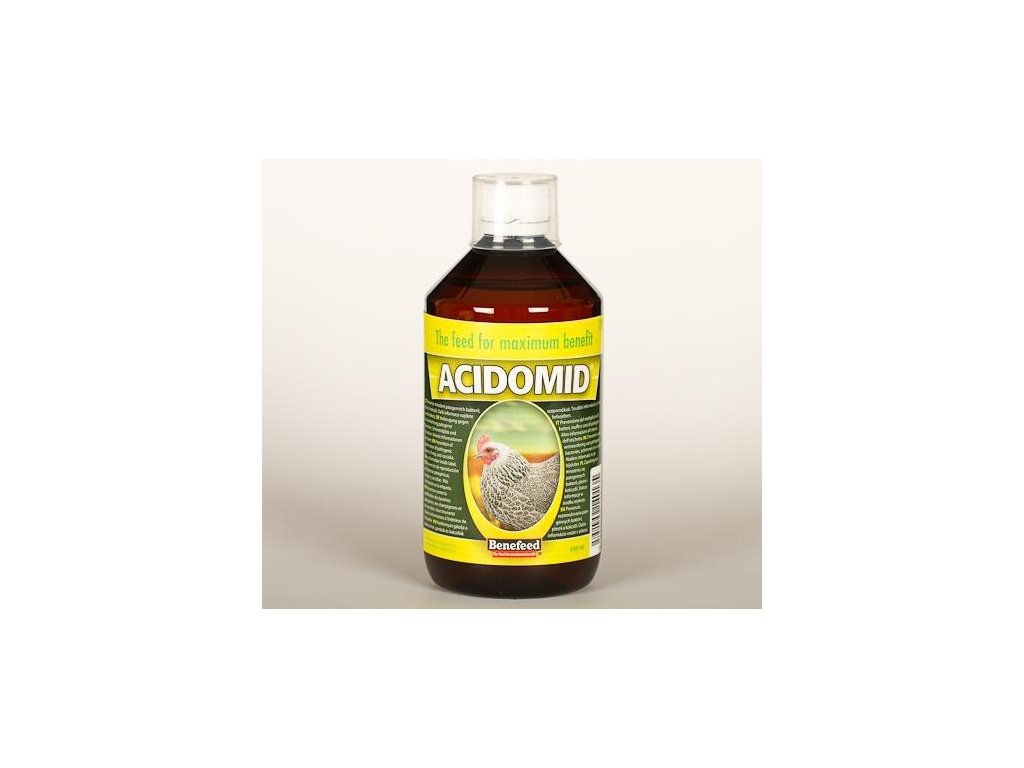 ACIDOMID® obsahuje kompletně všechny organické kyseliny důležité pro zažívání a trávení. Organické kyseliny okyselují napájecí vodu, účinně ji také konzervují a stabilizují. Je tak výrazně omezováno nežádoucí množení patogenních bakterií a plísní v napájecí vodě, napáječkách a v rozvodech napájecí vody. Organické kyseliny jsou lehce stravitelné, v organismu jsou navíc využitelné jako zdroj energie. Organické kyseliny také redukují potíže zažívacího traktu a zlepšují stravitelnost bílkovin.
