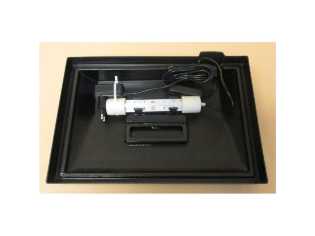Plně vybavená akvarijní sestava se špičkovým LED osvětlením. Klasické rovné provedení o objemu 12l je vhodné pro nejmenší začínající akvaristy.- moderní kryt se špičkovým LED osvětlením- klapka pro snadné krmení rybiček. Komplet obsahuje:- akvárium 30 x 20 x 20cm - kryt s led osvětlením s výkonem 3W v barvě černé- efektivní vnitřní filtr s filtračními médii - Claro 200
