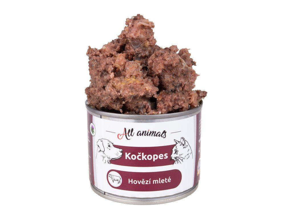 Luxusní 100% masová konzerva pro psy a kočky, s příchutí mletého hovězího masa.