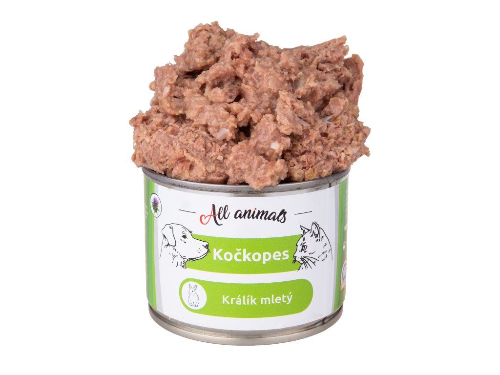 Luxusní 100% masová konzerva pro psy a kočky, s příchutí mletého králičího masa.