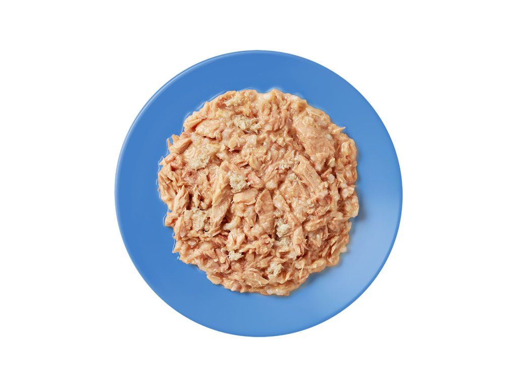 Doplňkové krmivo pro kočky, tuňáková receptura se sýrem bez kuřecího masa v lahodném vývaru...