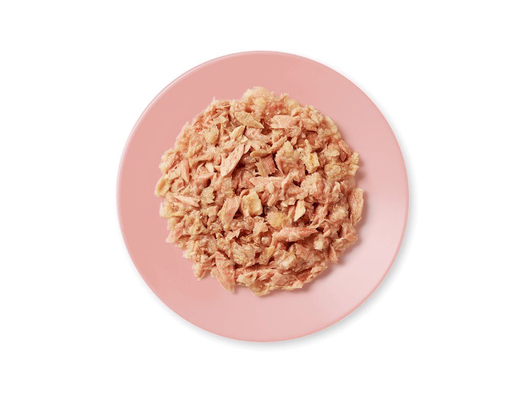 55% tuňák filet, 5% losos, rýžová mouka, rostlinná želírující látka.