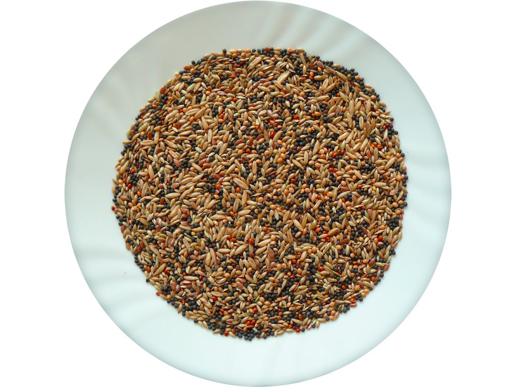 Složení: řepka, proso seté (žluté, červené), oves setý (loupaný), lesknice, len