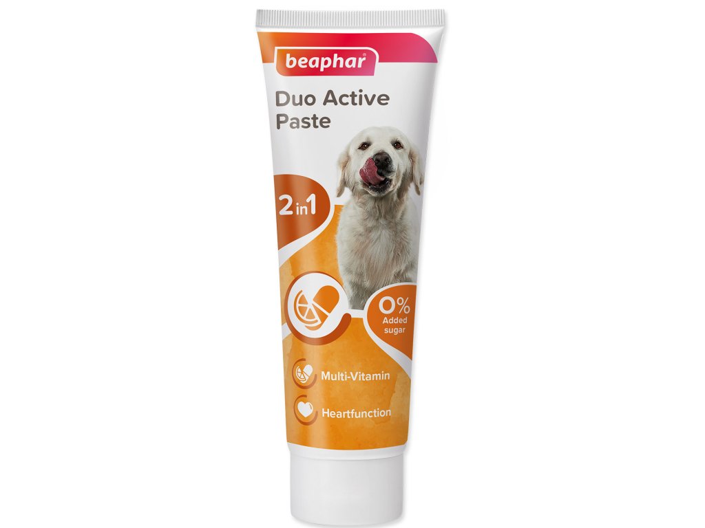 Dvoubarevná multivitaminová pasta Beaphar Duo Active je doplněk stravy pro psy a štěňata od 6 týdnů věku.