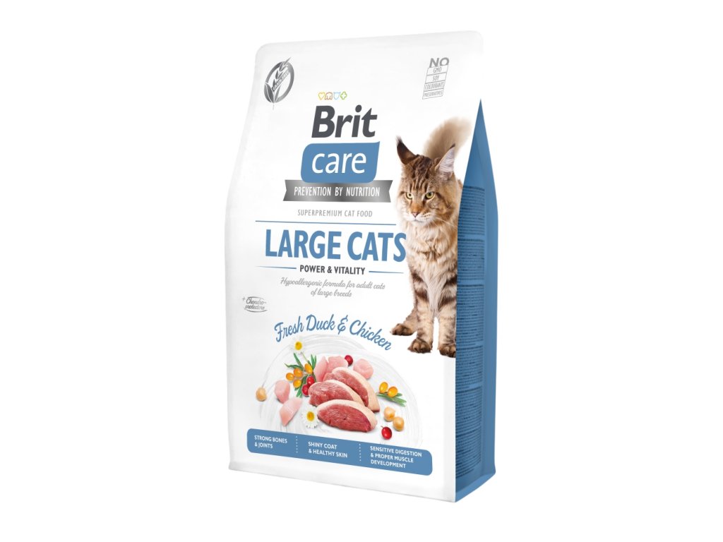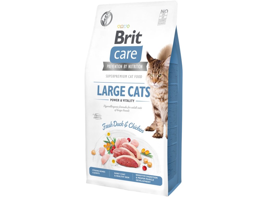 BRIT CARE CAT GRAIN-FREE LARGE CATS POWER & VITALITY. HYPOALERGENNÍ RECEPTURA "ČERSTVÁ KACHNA & KUŘE".