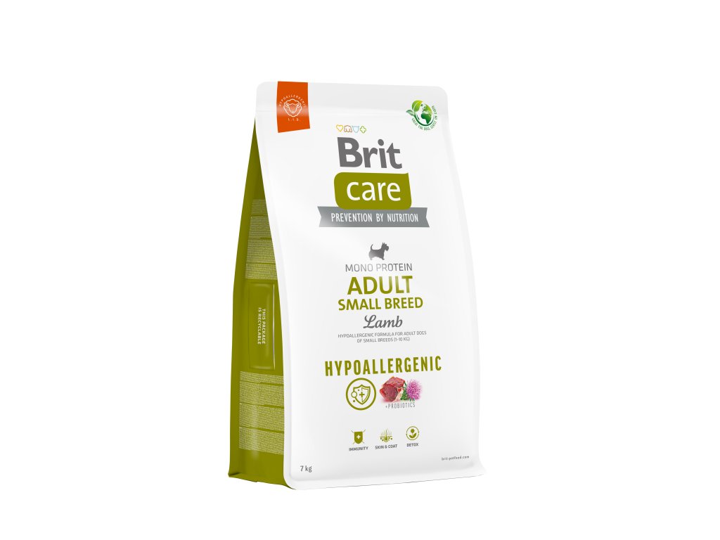 Brit Care Dog Hypoallergenic Adult Small Breed. Hypoalergenní receptura jehněčí & rýže pro dospělé psy malých plemen (1-10 kg).