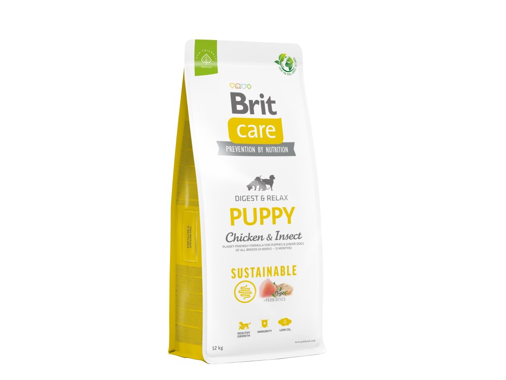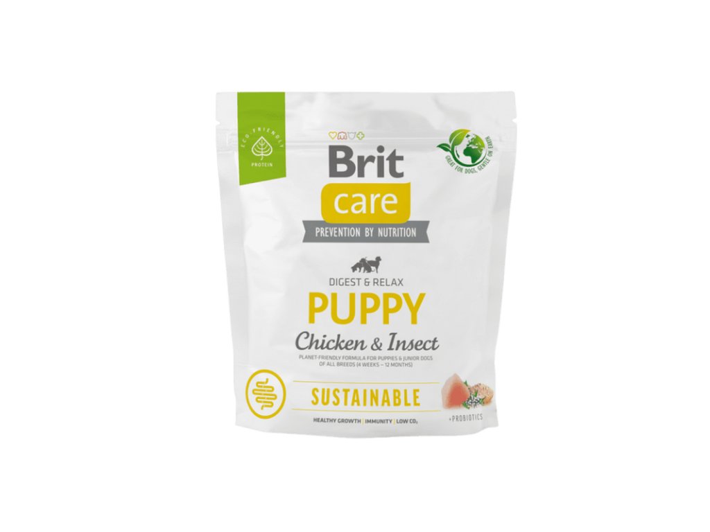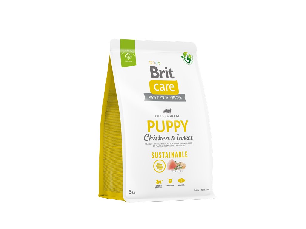 Brit Care Dog Sustainable Puppy. Receptura z udržitelných zdrojů surovin, Kuře a hmyz pro štěňata a mladé psy všech plemen (4 týdny – 12 měsíců). Kompletní krmivo pro psy.