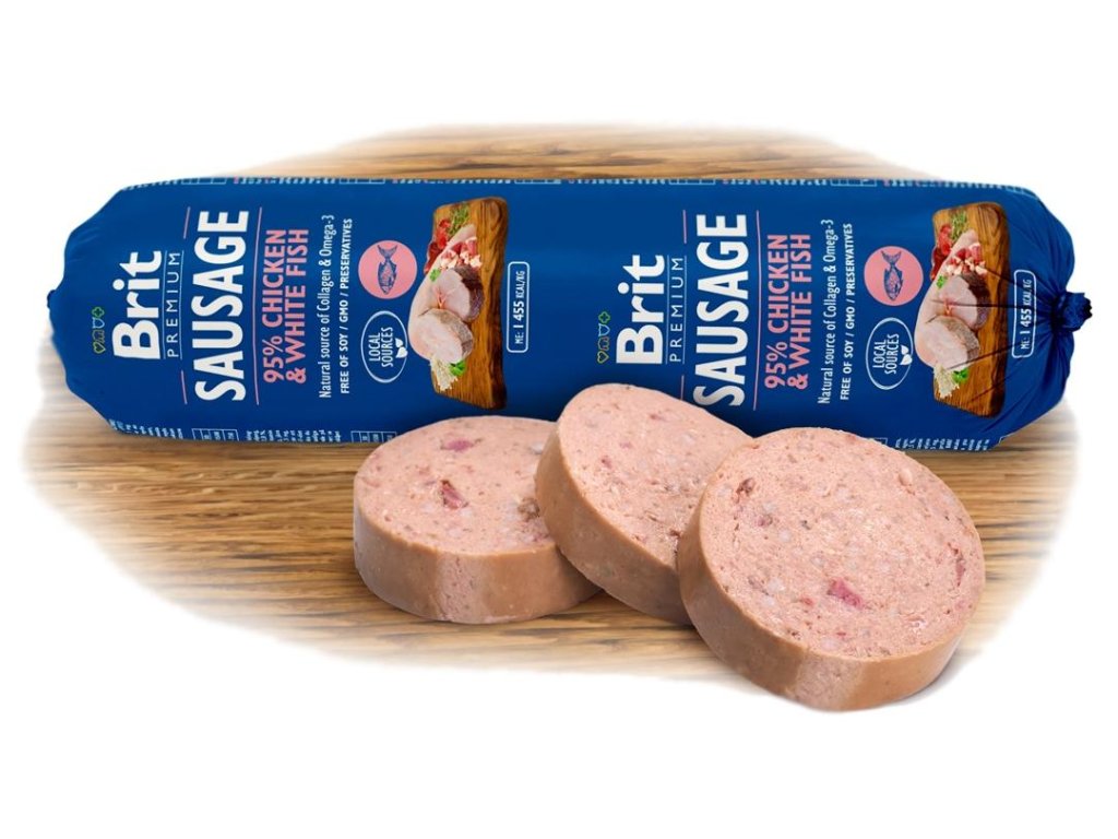 Brit Premium Sausage je kompletní krmivo pro psy, nebo ideální doplněk ke granulím, BARF stravě a vařenému masu.