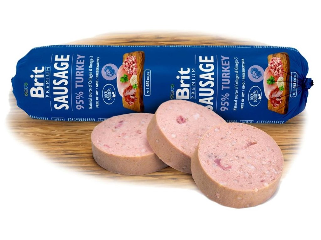 Brit Premium Sausage je kompletní krmivo pro psy, nebo ideální doplněk ke granulím, BARF stravě a vařenému masu.