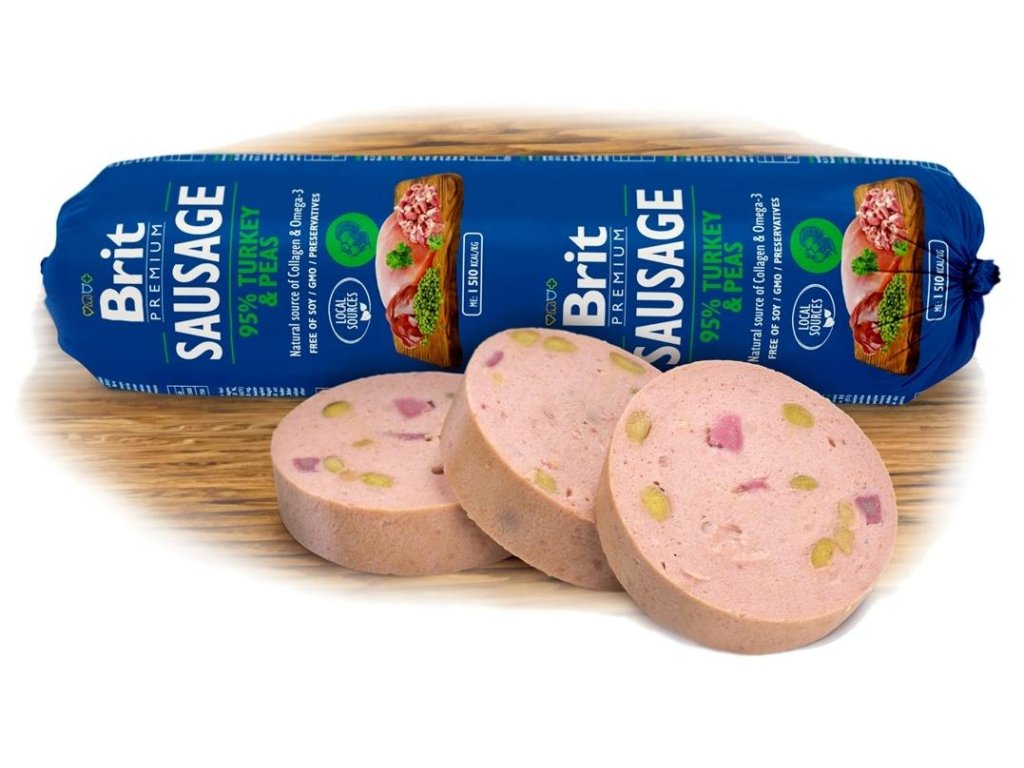 Brit Premium Sausage je kompletní krmivo pro psy, nebo ideální doplněk ke granulím, BARF stravě a vařenému masu. Chuťově vynikající krmivo s vysokým obsahem masa prospívá každému psovi. Masový pokrm obsahuje hypoalergenní krůtí maso a neobsahuje obiloviny. Je vhodné pro psy s citlivým trávením.