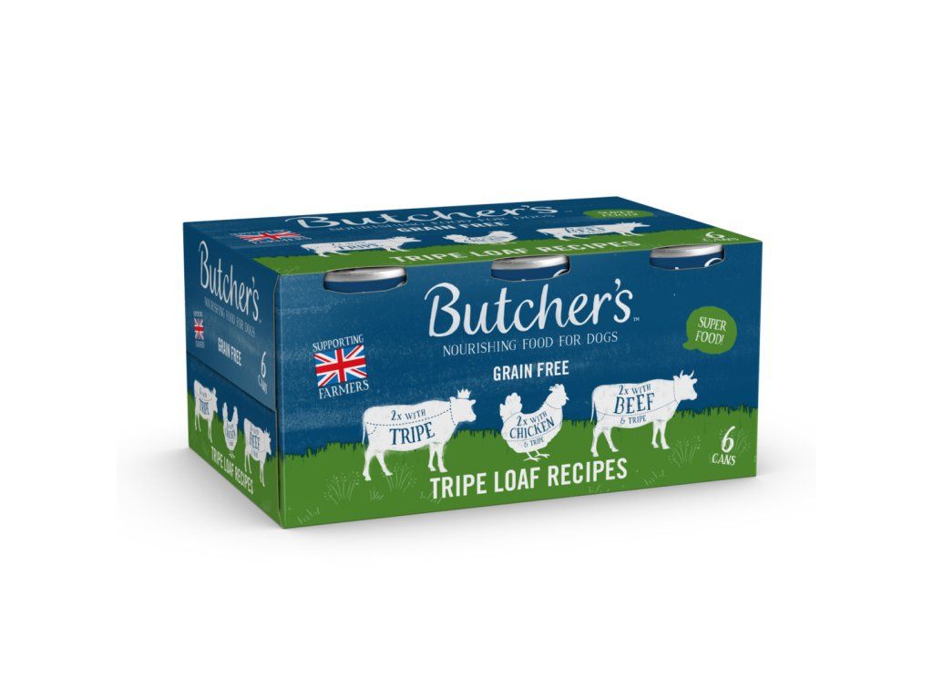 Naše receptura Tripe je přirozeně nabitá vysoce kvalitními bílkovinami, vápníkem pro silné kosti, vitamínem B12 a všemi důležitými Omega-3 a Omega-6 pro podporu imunitního systému a zdravou kůži a lesklou srst. Na rozdíl od jiných dršťků, které najdete, je naše zelená, protože pochází z dobytka krmeného trávou, takže si zachovává všechny své přirozené živiny. Protože je tento recept bez obilovin, je přirozeně bezlepkový, neobsahuje žádná zrna ani plniva. Tento recept na dršťky je původním receptem Butchera a pečlivě se vyrábí od roku 1987! Dršťky jsou přirozené super krmivo pro psy s chutí, kterou prostě milují!