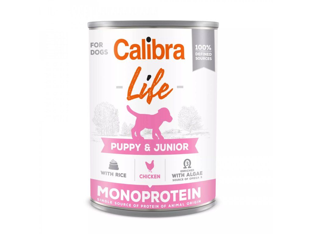 Calibra Dog Life Puppy & Junior Chicken with Rice - receptura konzervy s kuřetem, kuřecími srdíčky a rýží je kompletním krmivem, která je určena pro štěňata a je vhodná také pro březí nebo kojící feny.