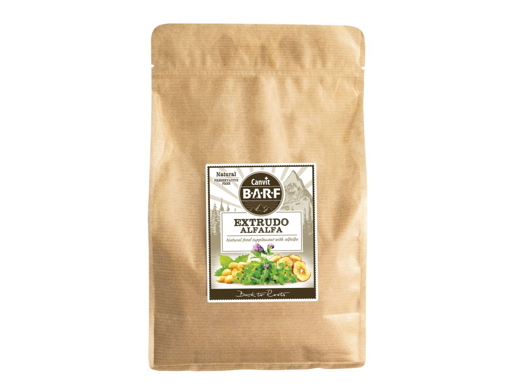 Canvit Extrudo Alfa-Alfa je nutričně vybalancovaná kompletní příloha k syrovému masu pro psy a kočky krmené metodou BARF nebo k doma připravované nebo nekompletní stravě (vařené maso, konzervy, ekonomické granule).