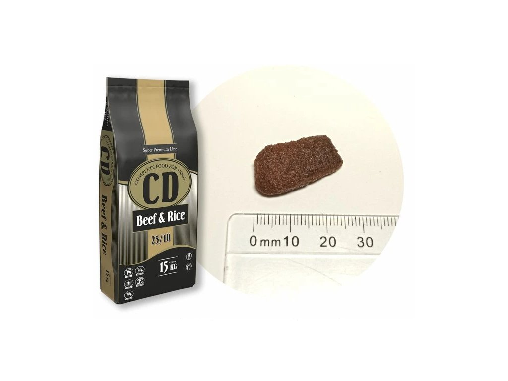 Složení tohoto krmiva je založeno především na podílu hovězího masa jako základní suroviny živočišného původu a podílu rýže jako zdroje glycidové složky. Nejsou použita rostlinná krmiva, která mohou způsobit alergii (sója, pšenice). Při velmi příznivé ceně se tak jedná o krmivo s vysokou stravitelností a dietetickou hodnotou. Obsah a podíl bílkovin a tuku splňuje požadavky na výživu všech dospělých psů. Zařazené komponenty vytvářejí krmivo o vysoké chutnosti, které je psy velmi dobře přijímáno. Přispívá k tomu velikost a tvar jednotlivých granulí. Nenasycené mastné kyseliny (omega 3 a 6) jsou ve vyváženém poměru. Obsah makro i mikroprvků plně pokrývá potřebu dospělého psa. Vitamíny jsou v dostatečném množství a vyváženém podílu s tím, že je vyšší podíl vitamínu C, který podporuje tvorbu biosyntézy kolagenu. Tím je zabezpečena správná regenerace kostní a chrupavkové tkáně. U starších psů je tak předcházeno viklání a vypadávání zubů, včetně velmi dobré regenerace a prevenci vůči infekčním chorobám. Společně s vitamínem C přispívá ke zvýšené odolnosti a zlepšenému imunitnímu systému podíl obsažených probiotik, které upravují pozitivně střevní mikroflóru. Přispívají k výrazně vyššímu využití všech potřebných živin a vytváří odolnost vůči stresům.