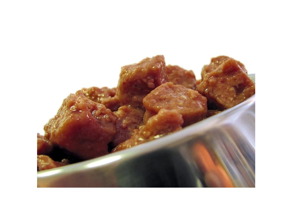 Složení: maso a výrobky živočišného původu (4% drůbeží), obiloviny a vedlejší výrobky z obilovin, karamel, zahušťovadlo, minerální látky, vitamíny