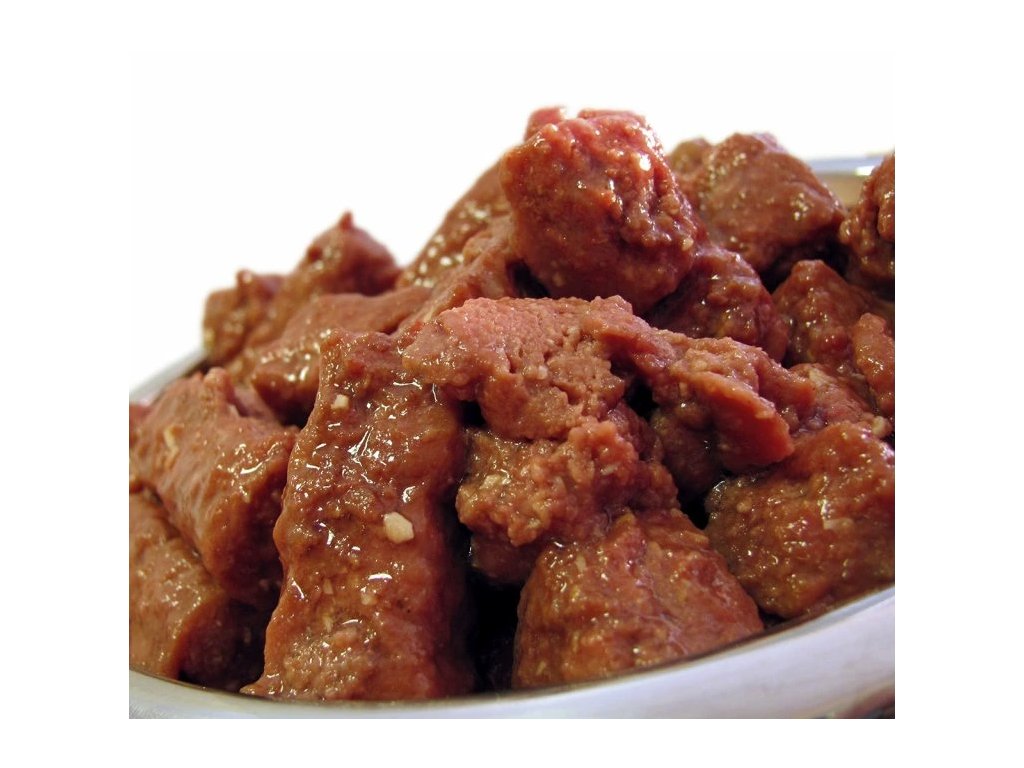 - Konzerva je plná šťavnatých hovězích kousků v ochucené omáčce