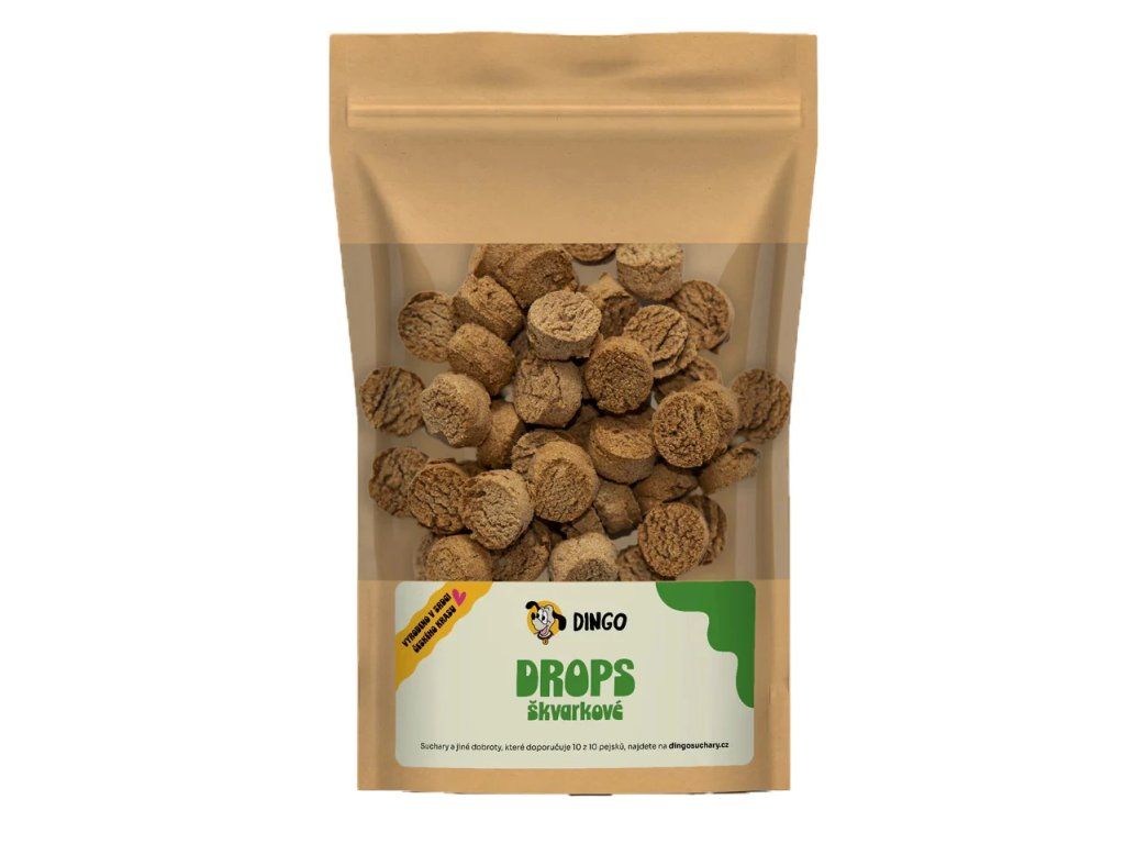 Pomalu pečené DINGO škvarkové drops jsou vyrobeny z kvalitních lokálních surovin. Přirozenou cestou čistí zuby vašeho mazlíčka a tím se zabraňuje tvorbě zubního kamene, jsou lehce stravitelné bez přidaných konzervantů a aditiv.
