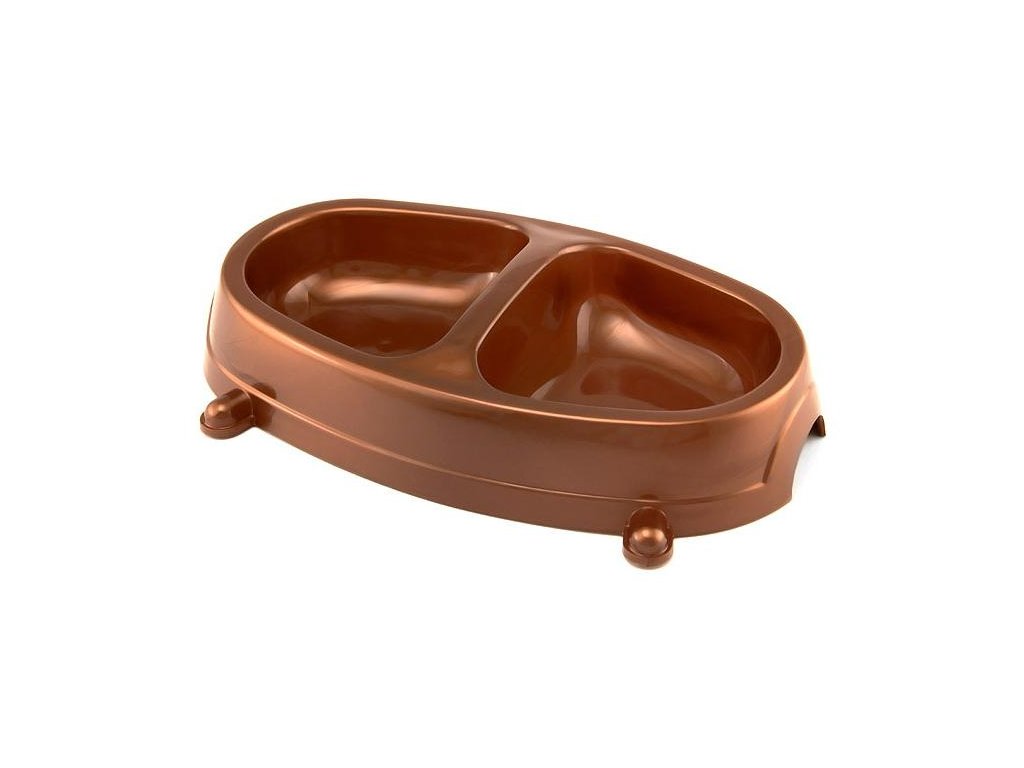 Plastová dvoumiska s gumovými přísavkami proti skluzu. Snadno omyvatelná. Vhodná pro hlodavce, kočky a malé psy.