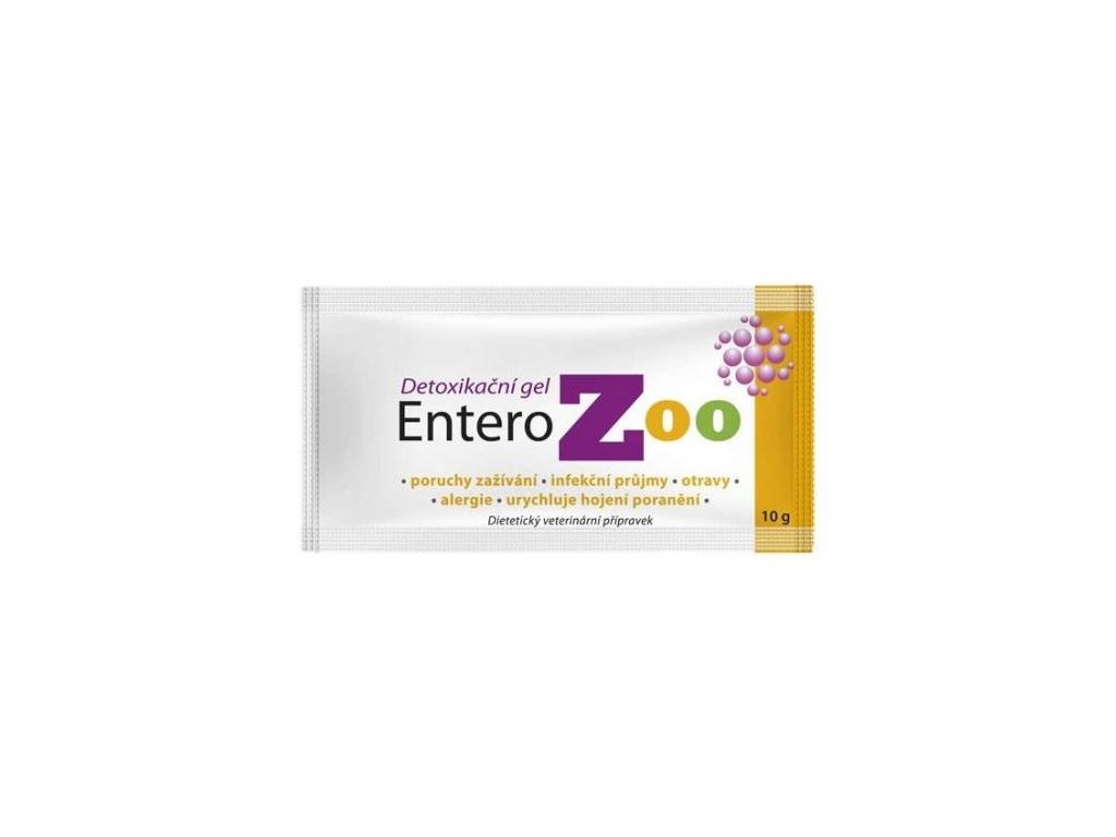- EnteroZOO slouží k celkové detoxikaci trávicího traktu u psů a koček, dokáže na sebe navázat středněmolekulární toxické látky, patogenní bakterie a alergeny a odvádí je z organizmu. Zabraňuje tak jejich usazování v těle a napomáhá tak udržet celý organismus a zažívání v přirozené formě.
