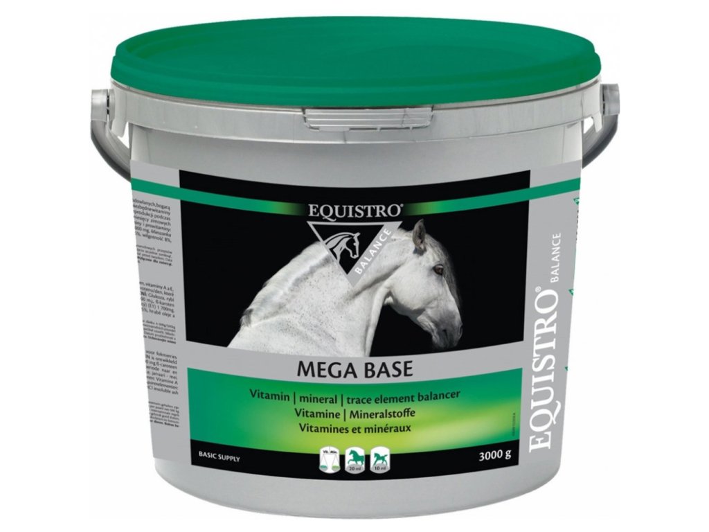 Mega base je minerální doplňkové krmivo pro koně určené k uspokojení jejich nutričních potřeb. Mega base obsahuje vápník a fosfor v adaptované koncentraci a dále klíčové vitamíny, minerály a snadno vstřebatelné stopové prvky (IPALIGO*) a prebiotika (BIO-MOS*).