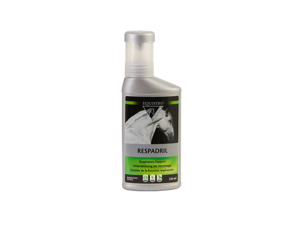 EQUISTRO Respadril je doplňkové krmivo pro koně s vysokou biologickou hodnotou danou kombinací 6 vybraných bylin a rychle vstřebatelnou mědí (IPALIGO). Respadril podporuje normální funkci dýchacího aparátu v průběhu akutních problémů.