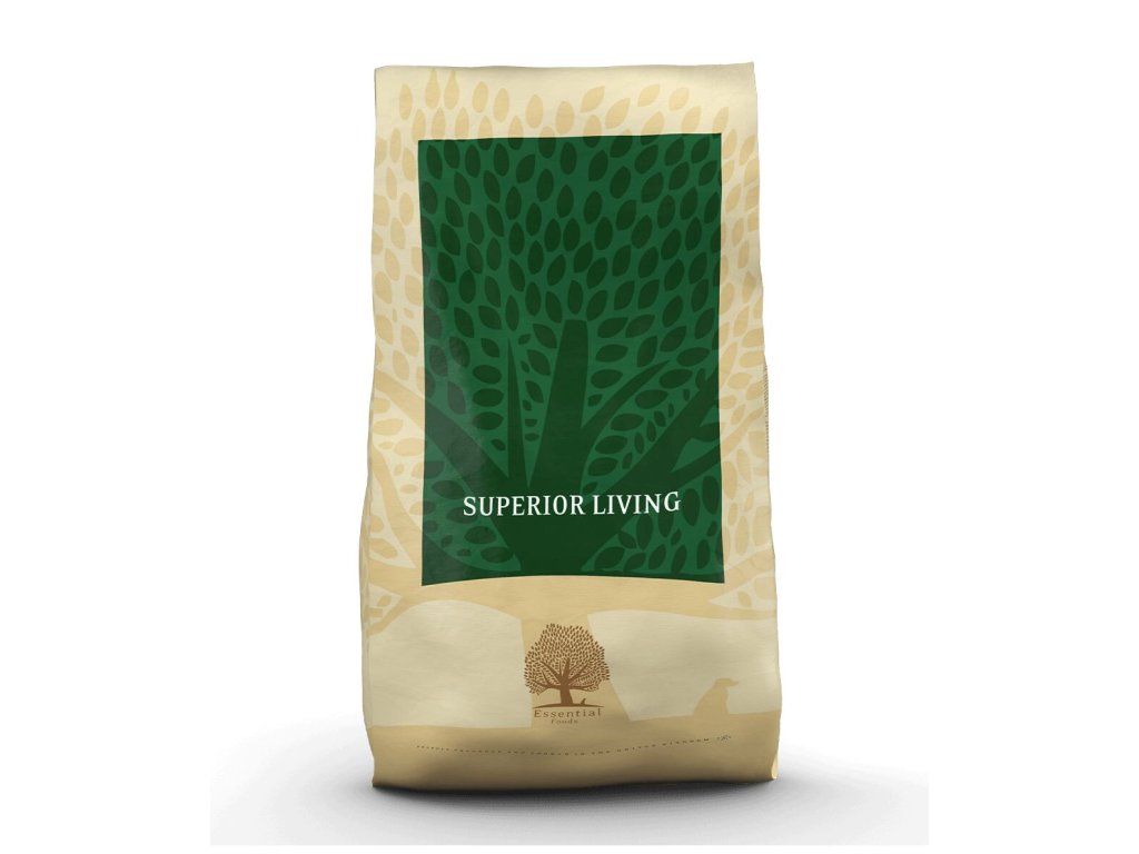 Essential Superior Living, to znamená jedinečnou bezobilnou kombinaci Ross a Cobb kuřecího masa a slavné Gressinghamské kachny s čerstvými rybami – svěžím duhovým pstruhem a skotským lososem. Toto krmivo je určeno pro všechna plemena, a to tak, aby bylo pro psa vyváženou stravou pro běžné každodenní aktivity. Pro větší rozmanitost živin a chutí se dá jídelníček skvěle doplnit balením Nautical Living nebo Estate living.