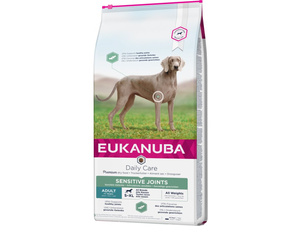 Schopnost svobodného pohybu je znakem dobrého zdraví, ale u mnoha psů mohou citlivé klouby a nadměrná hmotnost omezit aktivity, které z nich dělají psy. Nemoci kloubů jsou vlastně zdravotním problémem číslo jedna mezi psy velkých plemen. To, co váš pes jí, hraje klíčovou roli pro zdraví kloubů a správnou kontrolu hmotnosti. Tento fakt si uvědomovala společnost Eukanuba při tvorbě tohoto krmiva na míru: výsledkem je krmivo Eukanuba Sensitive Joints, které vašemu psovi pomůže udržet si dobrou kondici a užít si aktivní život.