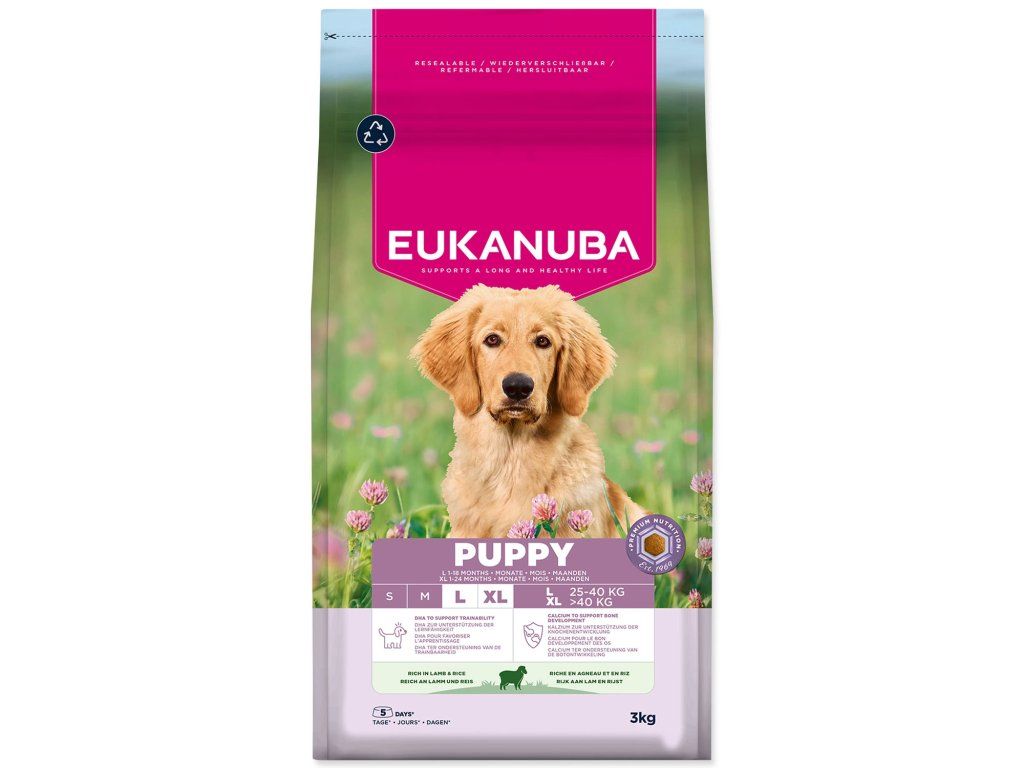 EUKANUBA Life Care nabízí vědecky podloženou prémiovou výživu, která je pečlivě navržena tak, aby vyhovovala měnícím se potřebám psů v každé fázi života. Suché krmivo EUKANUBA ve formě granulí, speciálně vyvinuté pro rostoucí štěňata velkých (od 1 do 18 měsíců) a obřích plemen (od 1 do 24 měsíců), je bohaté na jehněčí maso a rýži, takže je vynikající volbou pro štěňata, včetně těch s citlivým žaludkem. Lehce stravitelná rýže poskytuje šetrnou výživu, zatímco speciálně sestavená směs vlákniny s prebiotiky a řepnou dužinou podporuje zdravé trávení a zdraví střev. Kromě jehněčího masa obsahuje krmivo také kuřecí maso jako zdroj vysoce kvalitních bílkovin, které štěňatům pomáhají budovat silné a štíhlé svaly. Jedinečné šestihranné granule EUKANUBA v kombinaci se systémem dentální péče DentaDefense udržují zuby psa dlouhodobě čisté a zdravé. Přírodní zdroje omega-6 a omega-3 mastných kyselin podporují zdravou kůži a lesklou srst. Složení krmiva obohacené o přírodní antioxidanty navíc posiluje imunitní systém a podporuje celkové zdraví a vitalitu štěněte. Suché krmivo EUKANUBA je 100% kompletní a vyvážené a nabízí pokročilou výživu podporující růst a pohodu štěněte.