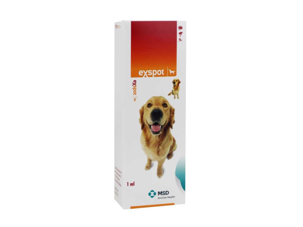 Léčba a prevence ektoparazitóz vyvolaných blechami, klíšťaty a pakomáry (Phlebotomus perniciosus). Exspot zabíjí blechy a klíšťata a zajišťuje ochranu vůči reinfestaci asi po dobu 4 týdnů po aplikaci. Proti pakomárům (Phlebotomus perniciosus) má repelentní účinek po dobu 3-4 týdnů a insekticidní účinek po dobu 2 týdnů.