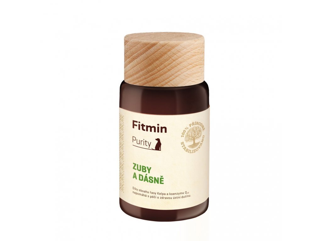 Doplňkové krmivo Fitmin Purity Zuby a dásně je ideální řešení pro prevenci zubního kamene a problémům se zuby. Řasa kelpa napomáhá předcházet tvorbě zubního plaku a kamene u dospělých psů. Přídavek vitaminu C a koenzymu Q10 podporuje prevenci onemocnění dásní, podporuje antibakteriální účinky a má vliv na snižování krvácivosti dásní a posilování zubní skloviny. Díky použití ß-glukanů působí doplňkové krmivo též na celkové posílení imunity.