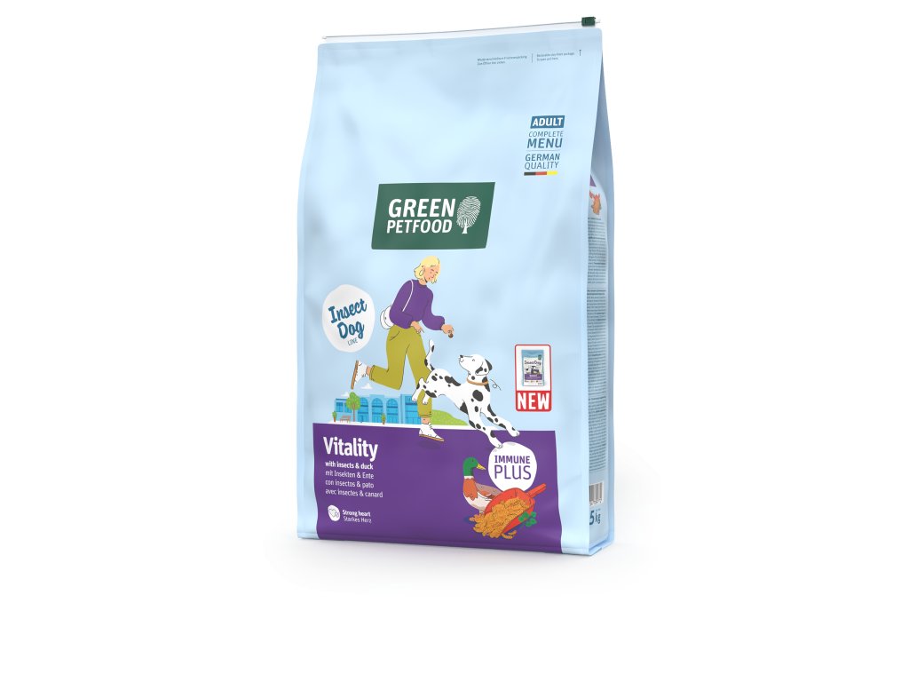 Nové oblíbené krmivo s hmyzím a kachním proteinem zajišťuje rovnováhu v misce. Vyvážený recept podporuje každodenní vitalitu našich psů. A díky bylinkám a ovoci chutná opravdu výborně. Mírný obsah energie z něj činí ideální krmivo pro psy s běžnou úrovní aktivity. Podporuje imunitní systém vašeho psa, střevní flóru a díky taurinu a L-karnitinu také zdravou srdeční funkci.
