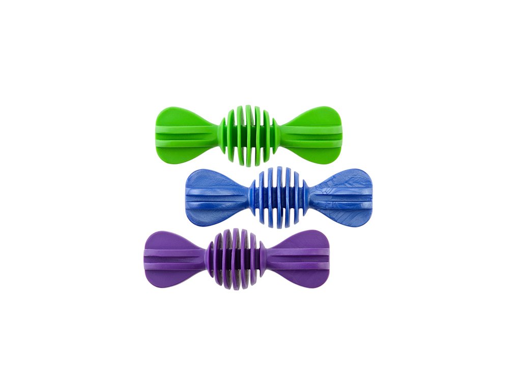 Hračka je vyrobena z netoxického plastu, vhodná pro posílení žvýkacích svalů psů.