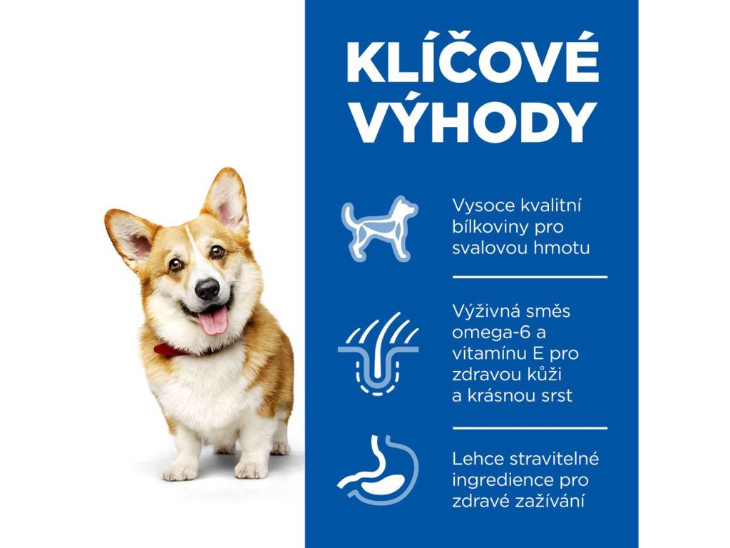 Malá velikost, velká dávka lásky. Hill's Science Plan krmivo pro malé a trpasličí dospělé psy s kuřetem je vytvořeno speciálně pro specifické potřeby malých a trpasličích psů během nejlepších let života. Nejmenší velikost granulí.