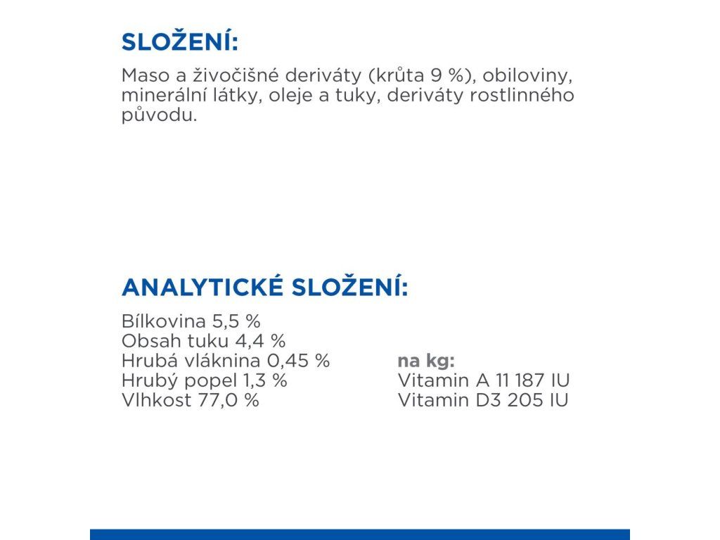SLOŽENÍ: krůta, ječmen, kukuřice, hovězí, vepřová játra, prášek ze syrovátek, proteinový hydrolyzát, živočišný tuk, minerální látky, rybí tuk, rostlinný olej.