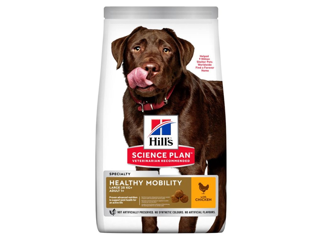 Hill's Science Plan Healthy Mobility krmivo pro dospělé psy velkých plemen s kuřetem má speciální složení podporující zdraví kloubů pro aktivní život.