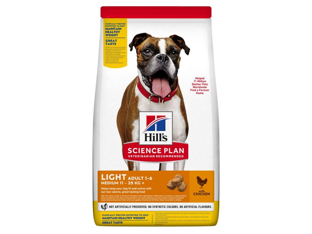 Nízkokalorické krmivo Hill's SCIENCE PLAN Light pro středně velké dospělé psy s kuřetem představuje přesně vyváženou výživu pro méně aktivní dospělé psy, kteří potřebují nízkokalorické krmivo, aby si udrželi zdravou hmotnost a životní styl.