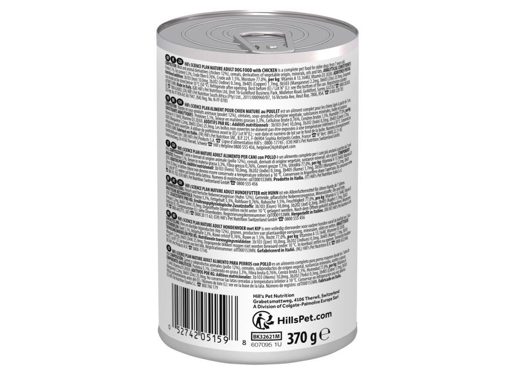 Váš pes si zamiluje chuť a měkkou, jemnou texturu krmiva Hill's Science Plan pro starší psy s kuřetem. Představuje dokonalý poměr chuti a živin pro uspokojení vašeho psa. Přesně vyvážená výživa s adekvátním obsahem energie pro podporu ideální váhy u dospělých psů ve věku od 7 let.