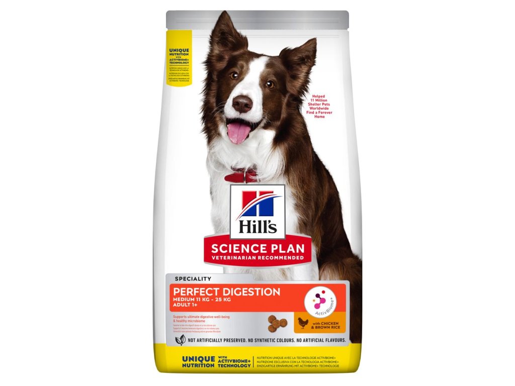 Krmivo Hill's Science Plan PERFECT DIGESTION pro dospělé psy středních plemen s kuřetem a hnědou rýží obsahuje ActivBiome+, exkluzívní směs prebiotik společnosti Hill's, která pomáhá rychle vyživovat a vyvažovat jedinečný mikrobiom vašeho zvířete.