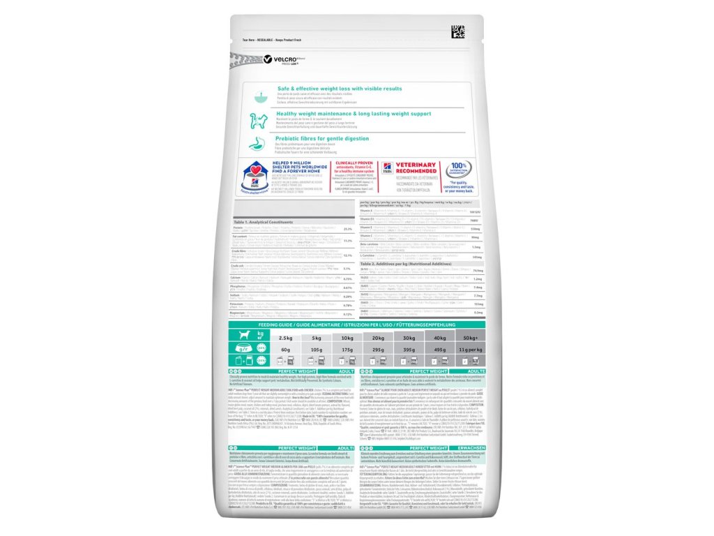 Hill's Science Plan Perfect Weight krmivo pro středně velké dospělé psy s kuřetem představuje lahodnou, klinicky ověřenou výživu pro dosažení a udržení zdravé váhy. Naše receptura s vysokým obsahem bílkovin a vlákniny je obohacena o L-karnitin a kokosový olej na podporu metabolismu zvířete.