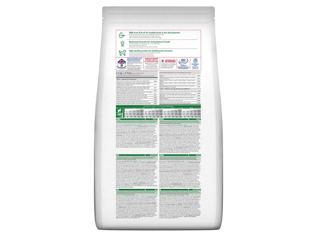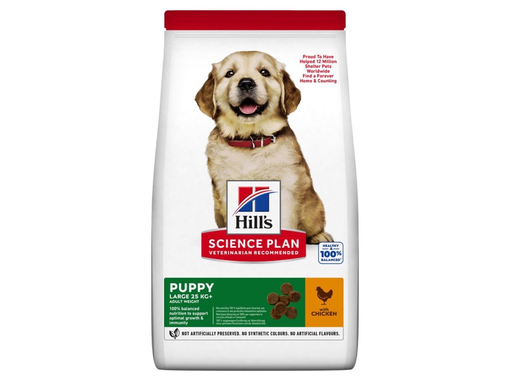 HILL's SCIENCE PLAN krmivo pro štěňata velkých plemen s kuřetem bylo speciálně sestaveno s optimálním obsahem vápníku pro kontrolovaný růst kostí s ohledem na unikátní vývojové potřeby štěňat velkých plemen. Zajistěte jim ten nejlepší start do života, aby mohla při růstu plně využít svůj potenciál.