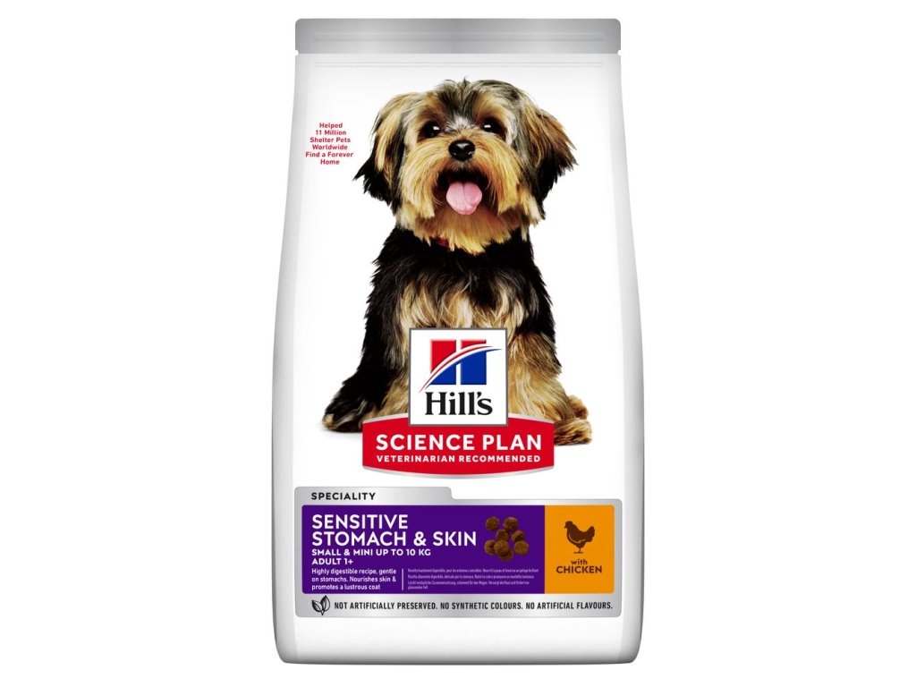 Hill's Science Plan Sensitive Stomach & Skin krmivo pro malé a trpasličí psy s kuřetem zajišťuje optimální zdraví trávicího traktu, zároveň vyživuje kůži a podporuje nádhernou srst.