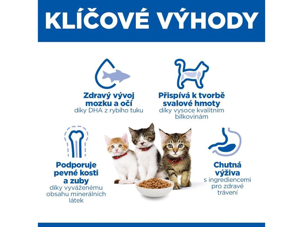 Hill's Science Plan krmivo pro koťata s lososem je 100% vyvážená a zdravá strava, která podporuje optimální růst a imunitní systém vašeho kotěte. Toto prémiové krmivo pro koťata je pečlivě navržené tak, aby poskytovalo pět zásadních benefitů v každém balení. Obsahuje DHA z rybího oleje pro zdravý vývoj mozku a očí, vysoce kvalitní bílkoviny pro tvorbu svalové hmoty a vyvážený obsah minerálních látek pro silné kosti a zuby. Toto lahodné krmivo pro koťata obsahuje technologii ActivBiome+ Multi-Benefit, směs prebiotik, která vyživuje jejich mikrobiom pro zdravé trávení a celkovou pohodu zvířete.