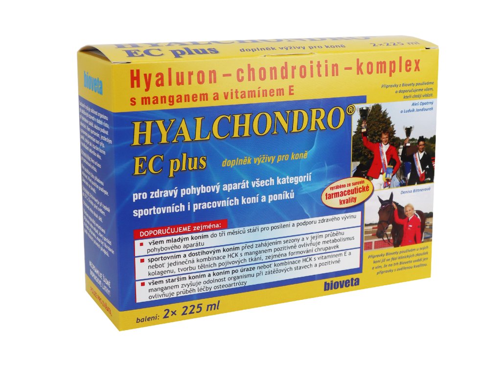 Pravidelným používáním přípravku HYALCHONDRO EC plus dochází ke zlepšení pohyblivosti a do jisté míry i úlevě od bolesti, která provází onemocnění či degenerativní změny pohybového aparátu koní. Proces regenerace pohybového aparátu a současná eliminace artritických bolestí probíhá individuálně mimo jiné v závislosti na míře poškození, fyzické kondici a věku zvířete. Již po čtyřtýdenním podávání přípravku dochází prokazatelně ke zlepšení obtíží a úlevě od bolesti. V případě opakujících se potíží se doporučuje použít přípravek po 3–4 měsíční přestávce znovu.