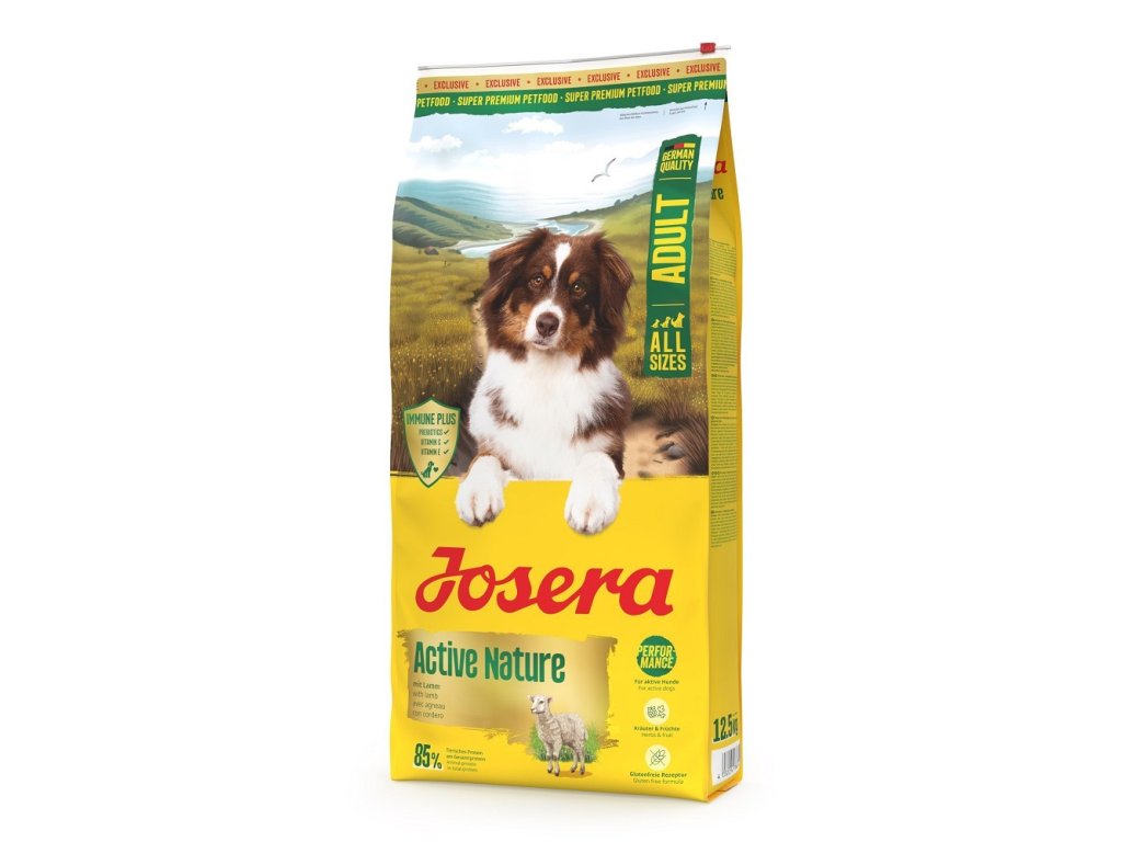 Josera Active Nature je určeno pro všechny energické psy, kteří milují svobodu. Vysoce kvalitní bezlepková receptura s extra porcí bílkovin z snadno stravitelného drůbežího masa a lahodného jehněčího masa dodá vašemu čtyřnohému příteli potřebnou energii. L-karnitin, který obsahuje, podporuje psy v obdobích zvýšené aktivity tím, že umožňuje produkci energie z mastných kyselin.