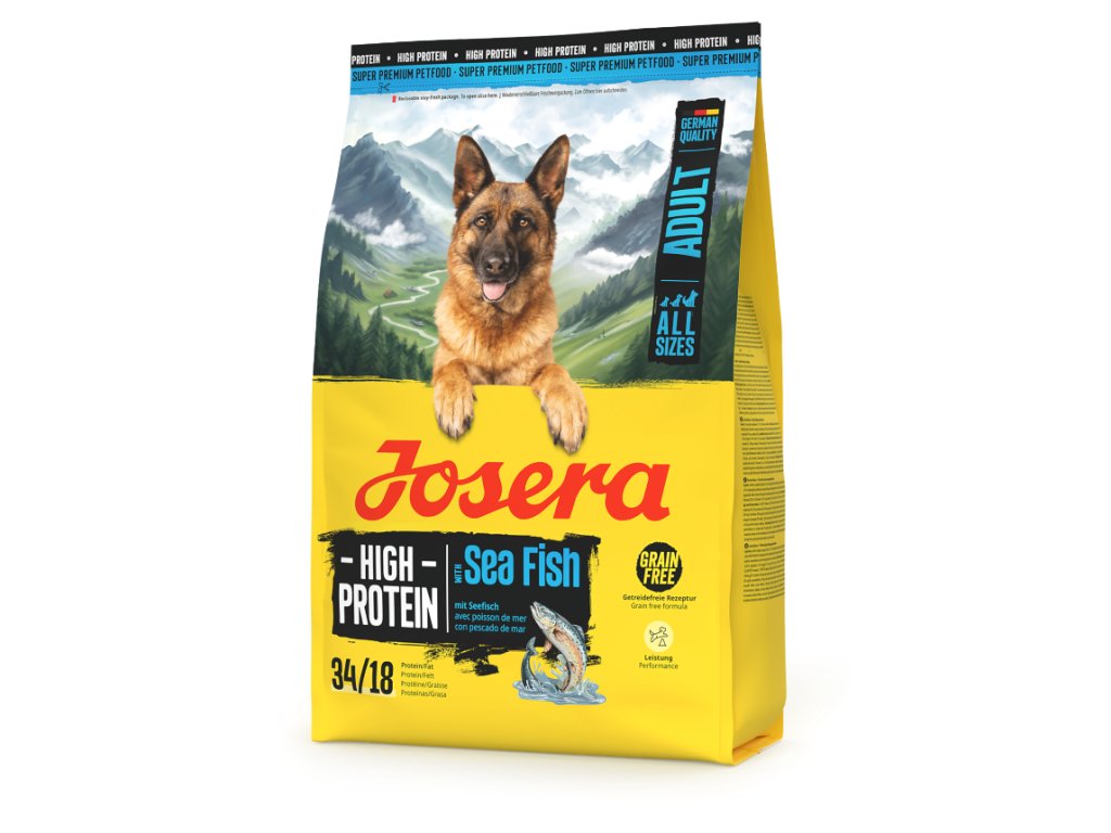 Akční denní režim si žádá energeticky bohaté krmivo pro psy: Naše Josera High Protein Sea Fish je přesně tím pravým! Toto suché krmivo bez obilovin obsahuje vysoký podíl cenných bílkovin a poskytuje dostatek energie pro velmi aktivní dospělé psy. Vysoký obsah cenných bílkovin z lososa zajišťuje, že toto krmivo je ideální pro čtyřnohé přátele, kteří se věnují psím sportům nebo denně podávají vysoké výkony jako pracovní psi.