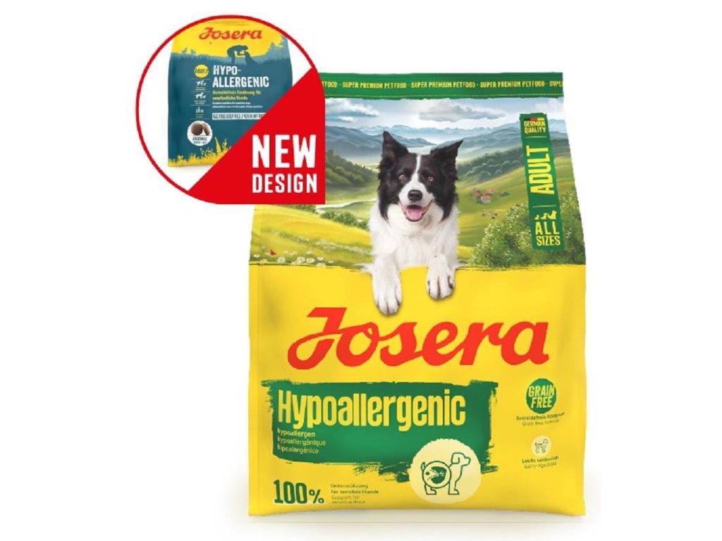 Naše Josera Hypoallergenic je krmivo pro dospělé psy citlivé na potraviny všech velikostí a plemen se sklonem k potravinovým intolerancím. Libová receptura bez obilovin s hmyzem jako výjimečným zdrojem bílkovin je obzvláště vhodná jako hypoalergenní dieta.