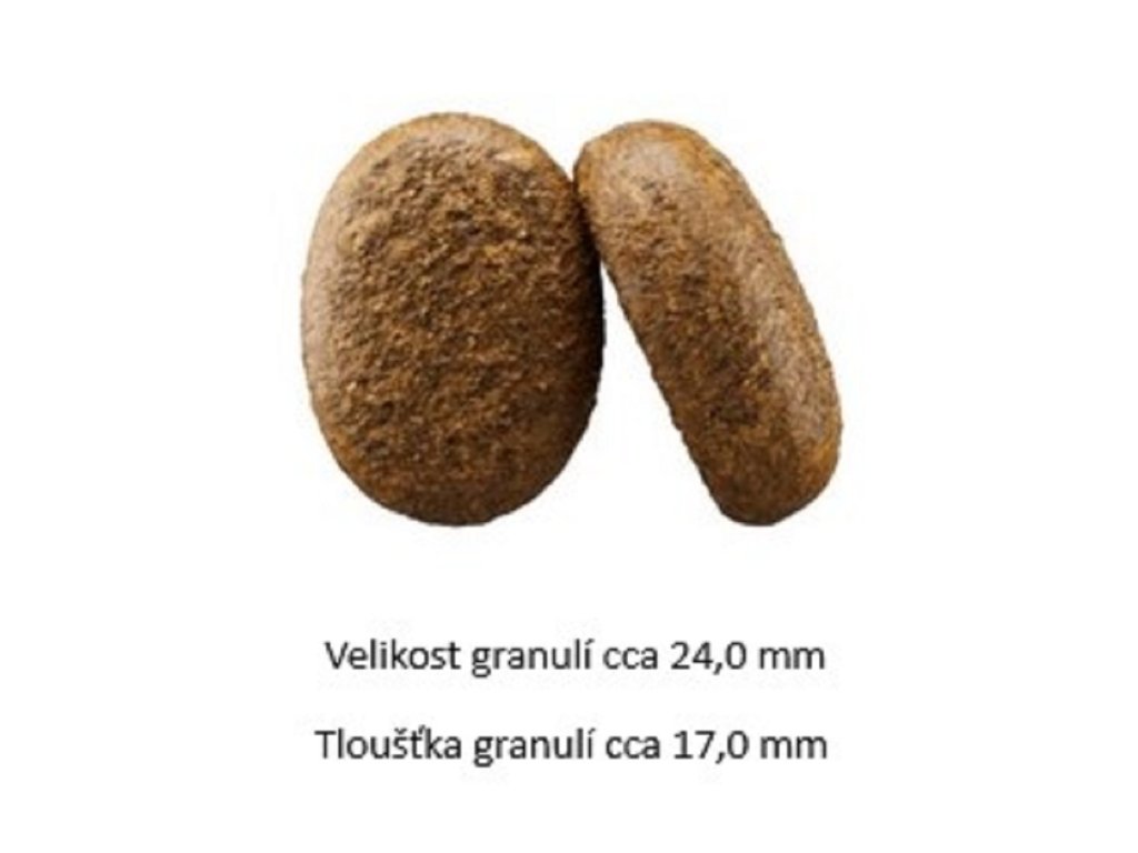Extra velké granule navíc zajišťují zábavu při žvýkání a omezují hltání. Taurin a L-karnitin obsažené v receptuře podporují srdeční funkci pro silné srdce, zatímco cenné mastné kyseliny podporují krásnou kůži a lesklou srst.