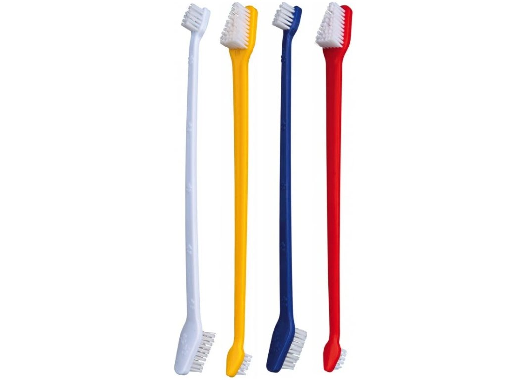 Tento zubní kartáček má na každé straně čistící štětiny o různé šířce. Menší konec kartáčku umožní kvalitní vyčištění zubů i na hůře přístupných místech. Větší plocha kartáčku urychlí proces čištění.