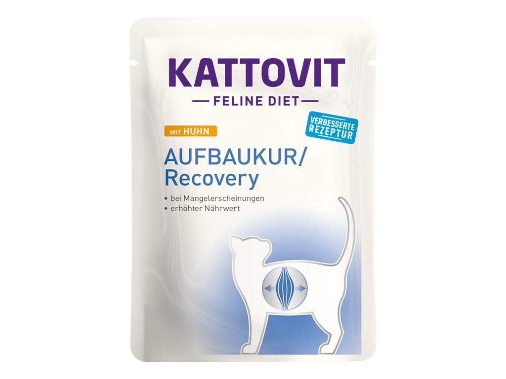 Dietetické mokré krmivo bylo speciálně vyvinuto pro kočky se zvýšenou potřebou energie a živin a vyznačuje se vyváženou recepturou. Obsahuje snadno stravitelné suroviny (např. kuřecí), které přispívají k optimálnímu příjmu živin. Kromě toho vyniká krmivo pro kočky Kattovit extra lahodnou chutí, díky čemuž je dobře akceptováno také mnoha chlupáči se sníženou chutí k jídlu. Jemným kouskům v delikátní omáčce odolá málokterá kočka. Rekonvalescenční formule bohatá na energii a živiny: stvořeno pro zásobování oslabených koček se zvýšenou potřebou energie vším potřebným, receptura obzvláště bohatá na živiny. Dobrá stravitelnost: obsahuje snadno stravitelné suroviny, např. kuřecí. Extra chutné: pro dobrou akceptaci u koček se sníženou chutí k jídlu, pro vybíravé kočky. Lahodná konzistence: jemné kousky s kuřecím v omáčce pro snadnou konzumaci.